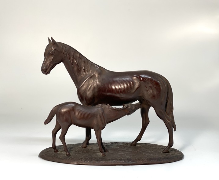 Antique sculpture "Horse with a Foal". Cast iron, casting, embossing. Cast in the 1950s based on a 19th-century model. Model author - Klodt P.K. Russia, 20th century.