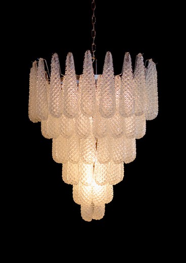 Большая люстра из муранского стекла. 74 подвески. 13 светоточек. Фабрика Mazega. Италия, ХХ век.